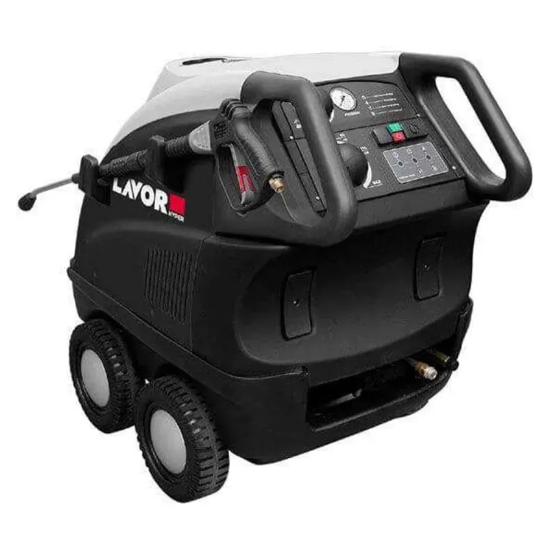 Hidrolavadora industrial de agua caliente diseñada para faenas intensivas en talleres, flotas e industrias. Su bomba de cigüeñal y caldera diésel entregan gran caudal y alta presión para remover suciedad pesada y grasas en jornadas exigentes.