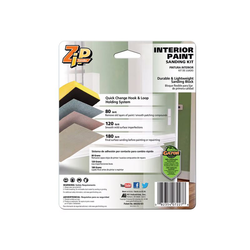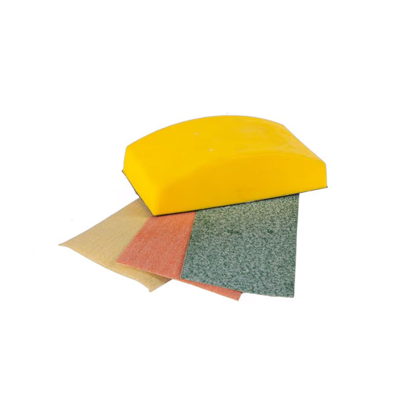 Kit de lijado innovador para abordar proyectos domésticos específicos. Incluye un bloque de cremallera ergonómico con sistema de sujeción de gancho y bucle de cambio rápido.