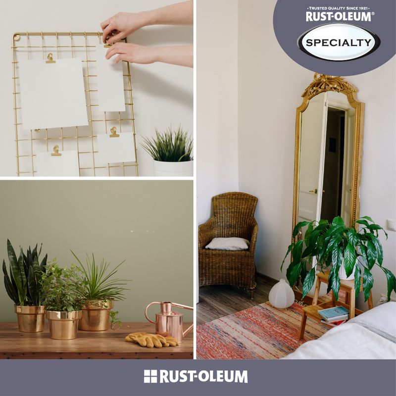 Los Aerosoles metálicos de Rust-Oleum® ofrecen un acabado intenso y brillante que se puede aplicar en madera, metal y más. Esta pintura proporciona un aspecto metálico brillante ideal para marcos de fotografías, candeleros, manualidades de días festivos y más. Diseñada únicamente para artículos decorativos de interior.