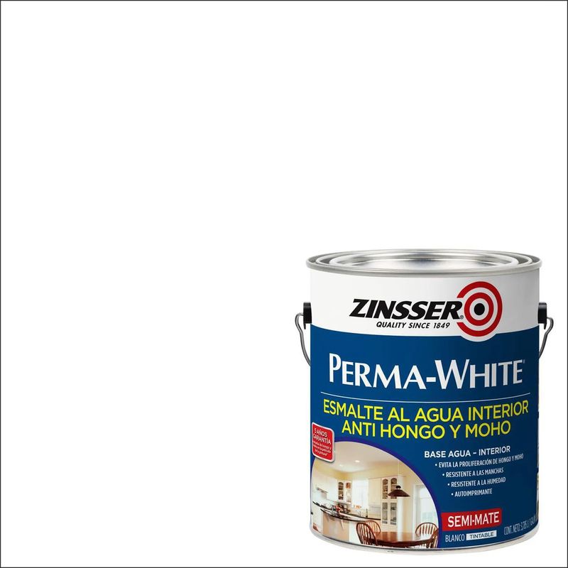 La Pintura para Interiores Perma-White® Mold & Mildew-Proof™ es una pintura acrílica de alto rendimiento diseñada para evitar el crecimiento de moho y hongos, proporcionando un acabado resistente, durable, lavable y capaz de soportar la humedad.