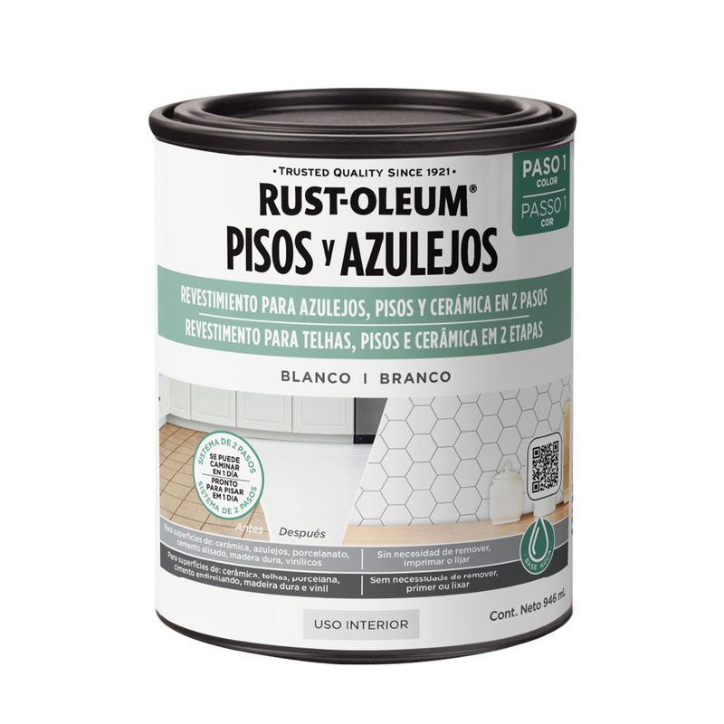 El recubrimiento para pisos HOME de RUST-OLEUM es una tecnología revolucionaria de gran resistencia y fácil de usar que puede aplicarse sobre una amplia variedad de sustratos en ambientes interiores sin tener que aplicar removedor, imprimante o lijar. Transforme cualquier habitación y remodele un piso anticuado. Simplemente limpie la superficie y aplique el sistema de 2 pasos: Base (color) + Acabado de terminación diseñados para brindar una apariencia completamente nueva a su espacio.